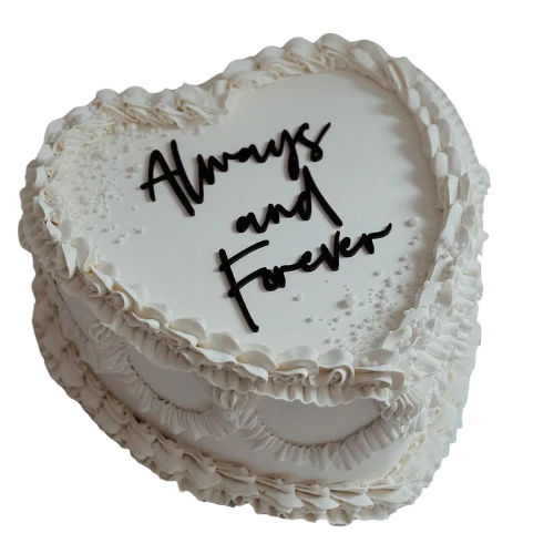 Celebrate your engagement with this romantic heart-shaped cake, decorated in an elegant white cream design with the heartfelt message “Always and Forever.” This 2 pounds cake is freshly baked with rich sponge and smooth frosting, making it the perfect centerpiece for your engagement party. A timeless design that beautifully symbolizes love and commitment.