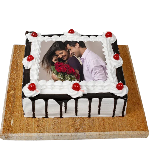 Celebrate love and togetherness with our Sweet Moments Cake, designed with a personalized edible couple photo and decorated in a black forest style with whipped cream, cherries, and chocolate drizzle. Freshly baked and customizable in flavour, design, and pounds, this cake is a perfect choice for anniversaries, engagements, birthdays, or Valentine’s surprises.